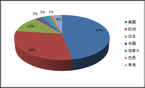 发展中国家市场增长将会成为世界市场规模扩大的主要动力 。鉴于不同地区的发达程度、人口基数及年龄结构、医疗卫生条件等差异较大,POCT 的消费也呈现较大的地区差异。2013 年美国地区市场规模达 75 亿美元,占比为 47%,成为全球最大的 POCT 消费区域;欧盟市场规模达 48.7 亿美元,占比为 30%,成为第二大 POCT 消费区域。在发展中国家,随着 POCT 市场知名度的提高,印度、中国、巴西的市场增长将会成为世界市场规模扩大的主要动力。