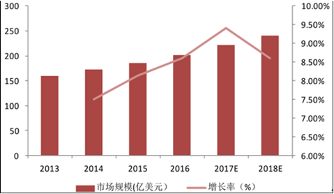 根据 Rncos 发布的《Global Point-of-Care Diagnostics Market Outlook 2018》,全球 POCT 市场发展稳定,2017 年规模为 221 亿美元,预计 2013-2018 年间保持8%左右的年复合增长率,将在 2018 年达到 240 亿美元的市场规模。从全球市场格局来看,由于地区的经济水平、人口基数、医疗卫生条件等差异较大,POCT 的市场消费呈现较大的地域差异。欧、美、日 POCT 市场发育成熟,占据近 90%的份额,随着市场应用的进一步推广,巴西、中国、印度等新兴发展中国家将成为全球 POCT市场规模扩大的主要源动力。