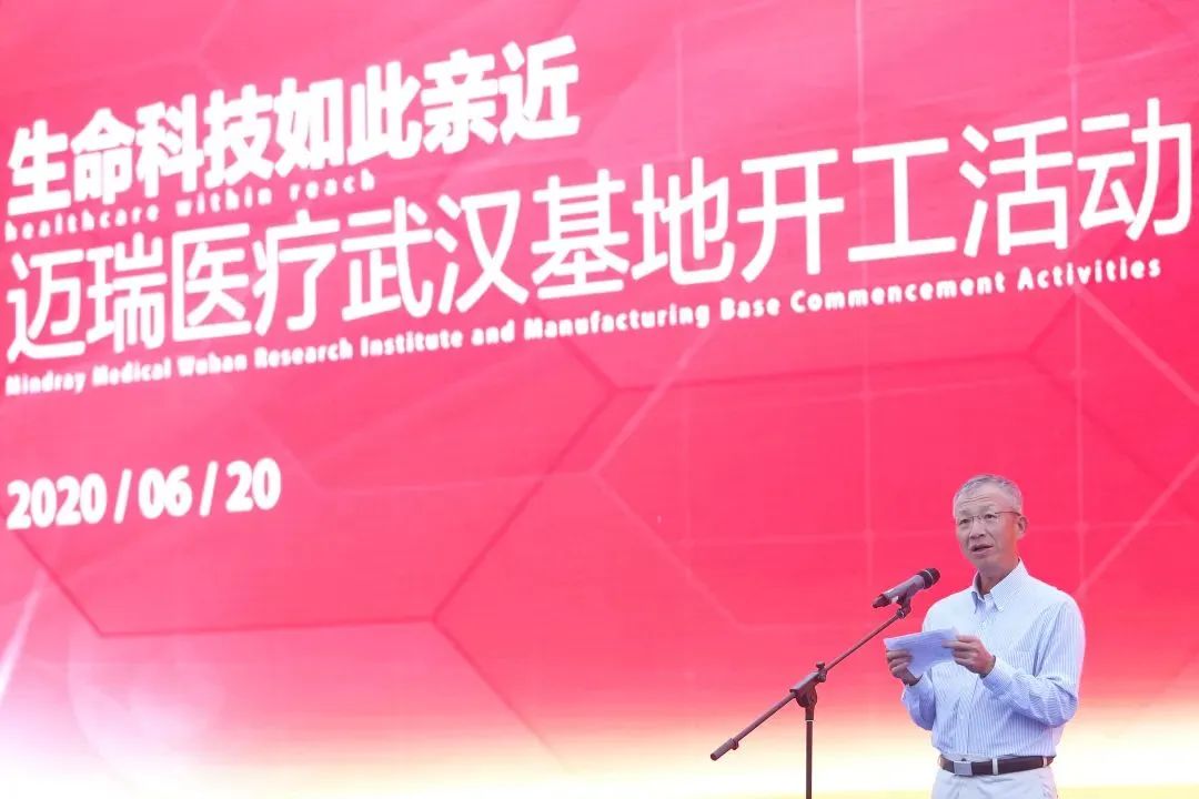 6月20日,湖北武汉,迈瑞医疗武汉基地开工仪式上,迈瑞医疗总裁成明和致辞。