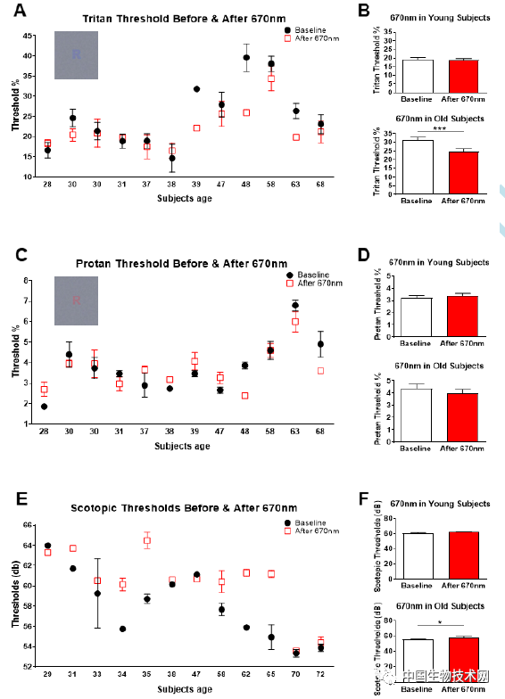 研究人员发现,670纳米的光对年轻人没有影响,但在40岁左右和40岁以上的人群中,效果显著。