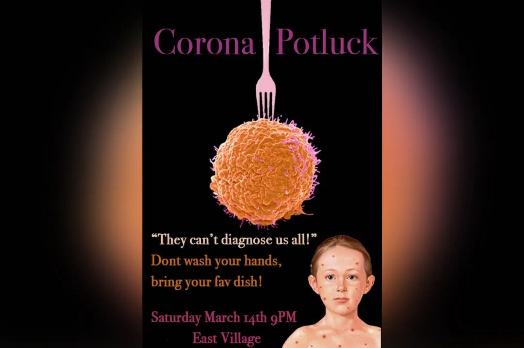 在他发给朋友们的邀请函上写着,“不要洗手。带上你最喜欢的菜!”